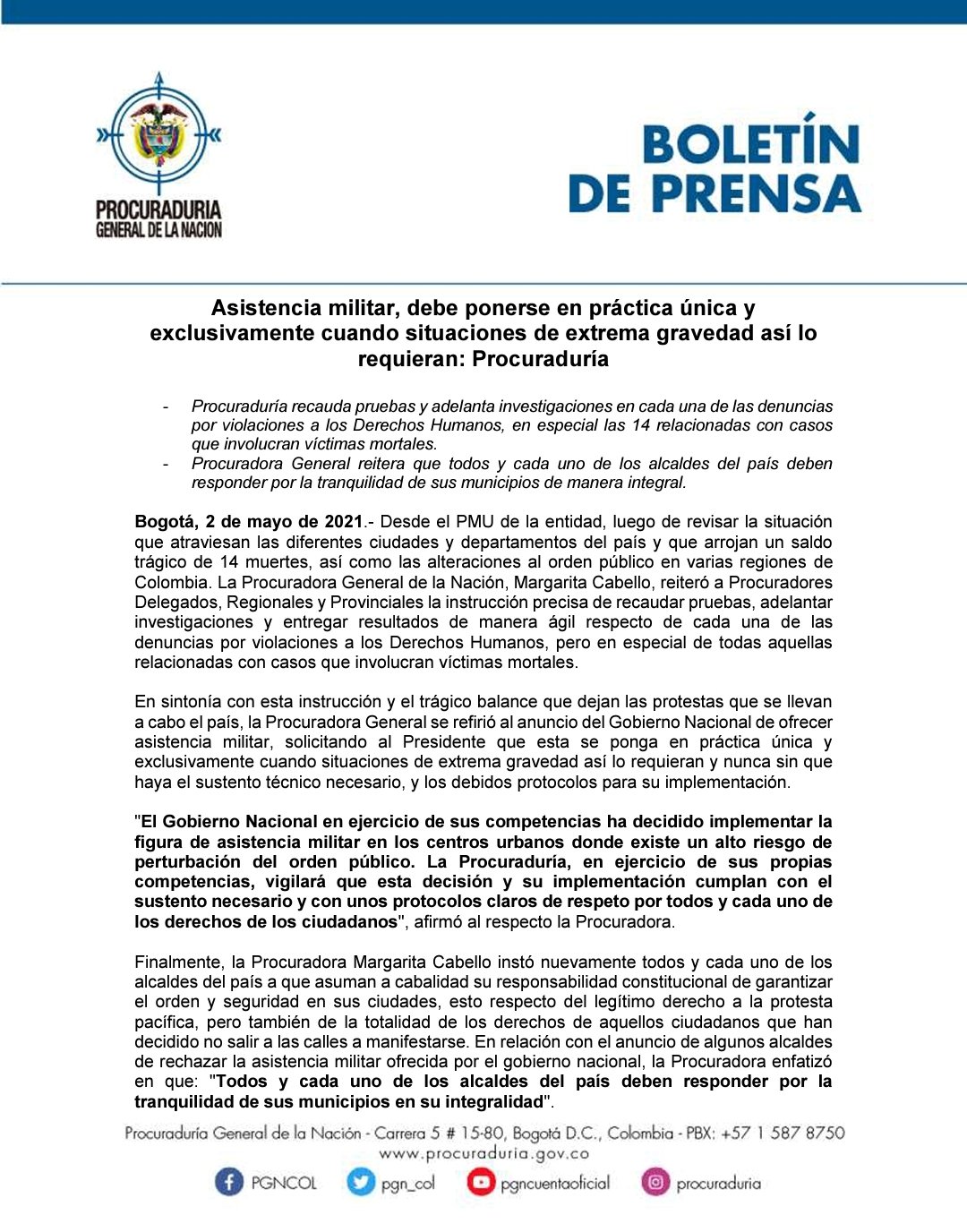 Informe de la procuraduría general del estado (pge) preparado a solicitud de la oficina del alto comisionado de las naciones para los derechos humanos (oacnudh) sobre el desarrollo de las protestas y otras situaciones de tensión derivadas tras las elecciones generales del 20 de octubre de. Es un órgano de control autónomo. Conformada por cerca de 4 mil servidores, la procuraduría tiene autonomía. Dentro del mecanismo del control de constitucionalidad, el procurador general de la nación interviene siempre rindiendo su concepto sobre el particular. Así lo determinó la procuradora general de la nación, margarita cabello, a través de un resolución, en la que indica que con ello hace cumplir la ley. Procuraduría general de la nación, república de colombia. ¿desea activar las notificaciones en el escritorio? Más de procuraduría general de la nación. Actualidad, última hora, vídeos, fotos y sonidos sobre procuraduria general procuraduría acaba de abrir indagación preliminar contra integrantes de la policía por la presunta retención y agresión sexual a menor de edad. Que se encarga de investigar, sancionar, intervenir y prevenir las irregularidades cometidas por los funcionarios públicos, los particulares que ejercen funciones públicas y las agencias. #conlalupaenlavacuna | la procuraduría #regionalcaldas y #provincialmanizales visitaron el puesto de vacunación ubicado en cable plaza, de la ciudad de manizales, con el fin de verificar el cumplimento de los lineamientos de. Para visitar el país con la mejor experiencia, actualízalo a la última versión o descarga uno de los siguientes navegadores soportados Últimas noticias, fotos, y videos de procuraduría general de la nación las encuentras en el comercio.
